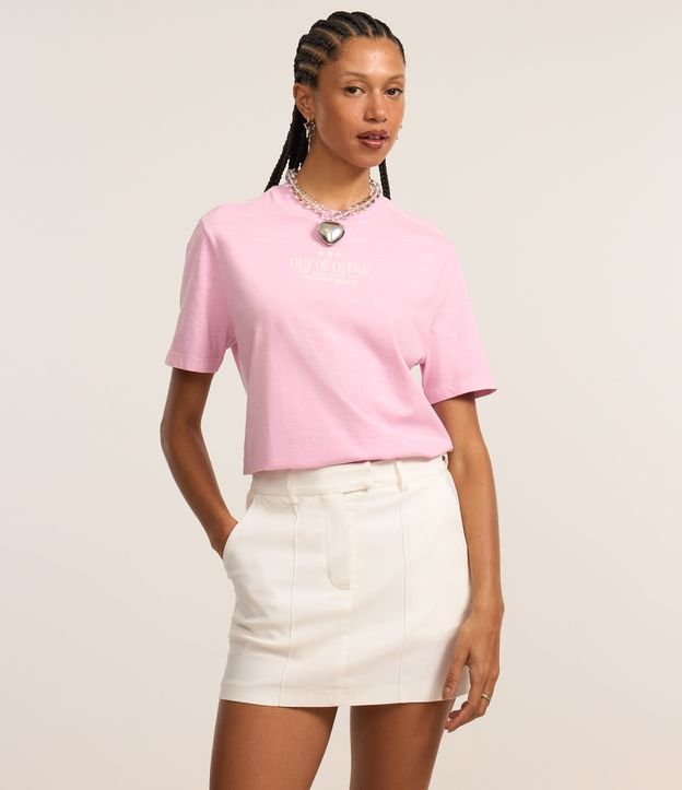 Camiseta em Algodão Estonado com Estampa Out of Office Rosa