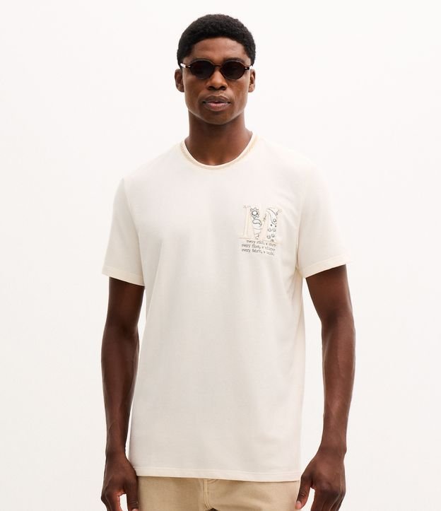 Camiseta em Algodão Manga Curta com Lettering M Bordado Branco