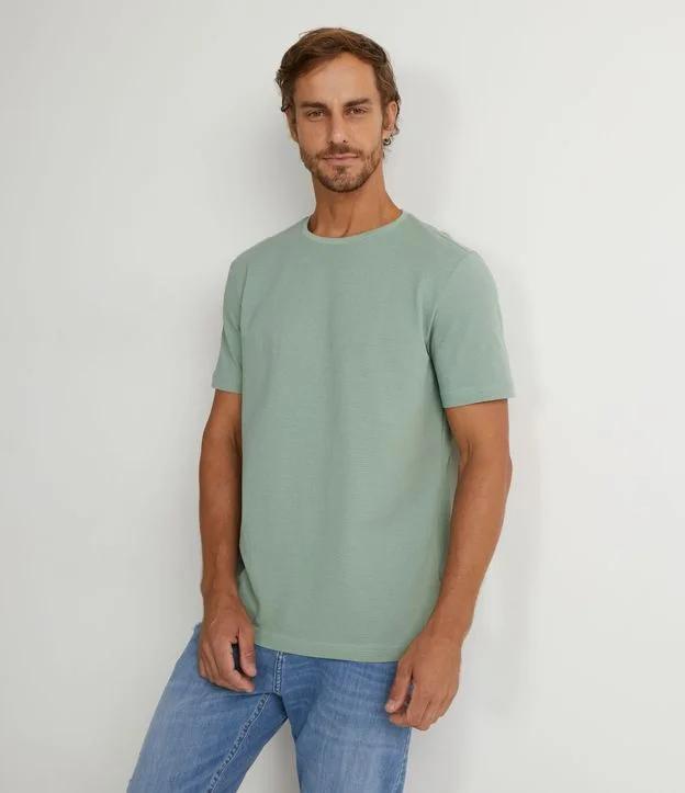 Camiseta em Algodão com Textura e Manga Curta