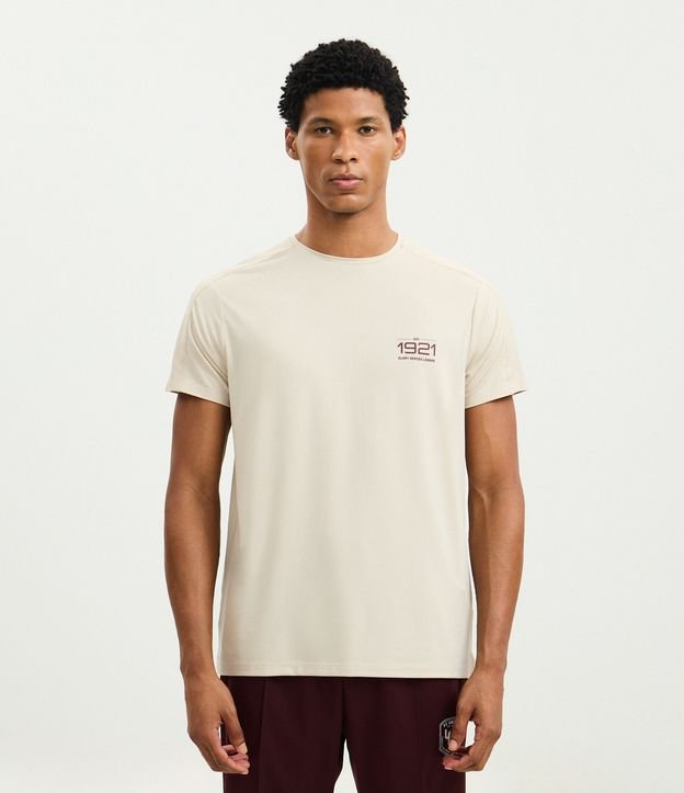 Camiseta masculina confeccionada em poliéster. Possui gola redonda, manga curta, estampa lettering "1921", tecnologia dry e textura no ombro.