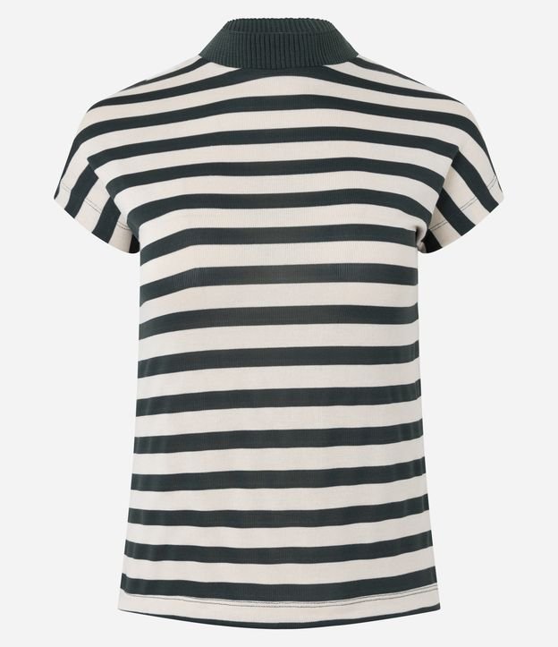 Camiseta em Tricô com Estampa Listrada e Gola Alta Off White/Verde