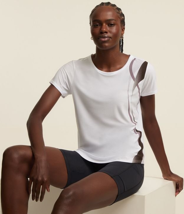 Camiseta Esportiva Alongada com Estampa de Ondas