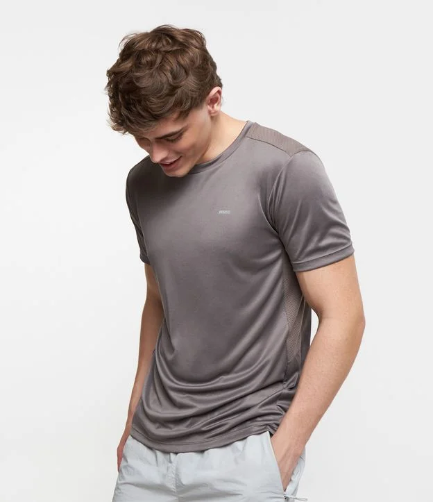 Camiseta Esportiva com Tecnologia Dry e Detalhes Refletivos Cinza