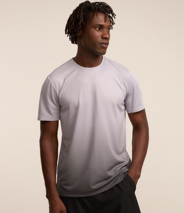 Camiseta esportiva, com tecnologia dry, manga curta e com fundo degrade.