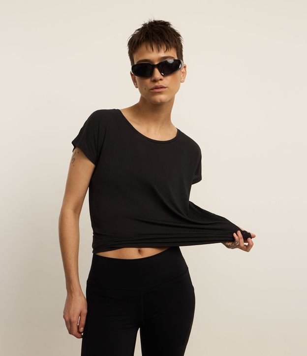 Camiseta Esportiva em Microfibra com Decote Redondo Preto