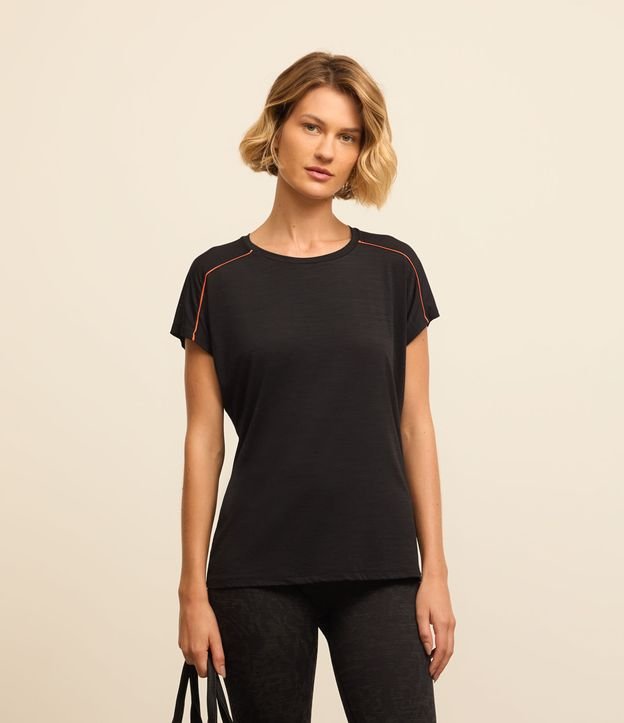 Camiseta Esportiva em Microfibra com Furos e Contraste Preto