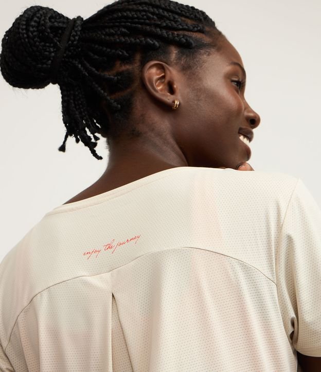 Camiseta Esportiva em Microfibra Manga com Curta Bege