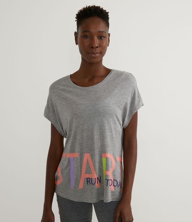 Camiseta Esportiva em Viscose com Estampa em Lettering