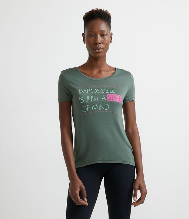 Camiseta Esportiva em Viscose com Estampa Lettering "Impossible is Just a State of Mind"