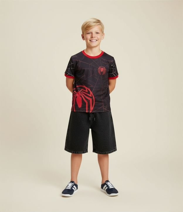 Camiseta Esportiva Infantil com Estampa Homem-Aranha - Tam 4 a 10 Anos Preto