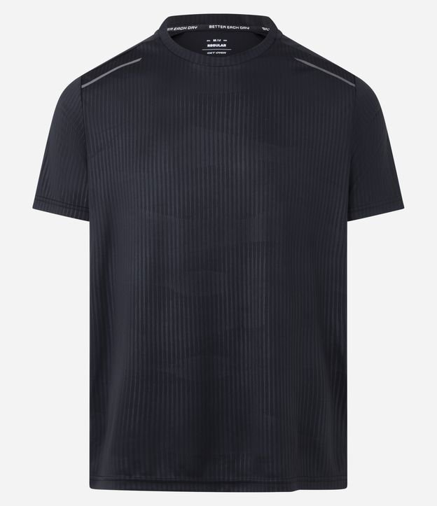 Camiseta esportiva masculina confeccionada com tecnologia dry, no modelo regular. Possui gola redonda, manga curta, detalhes nos ombros refletiva e texturizada.