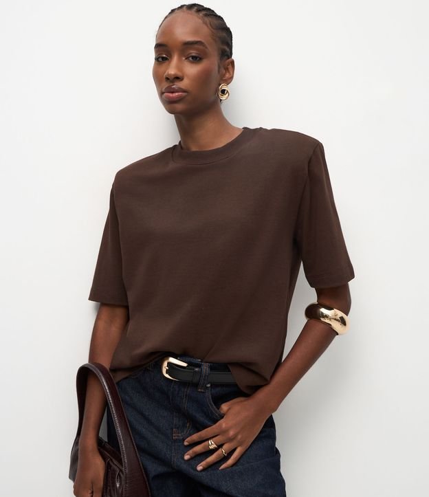 Camiseta Estruturada em Algodão com Ombreiras Marrom
