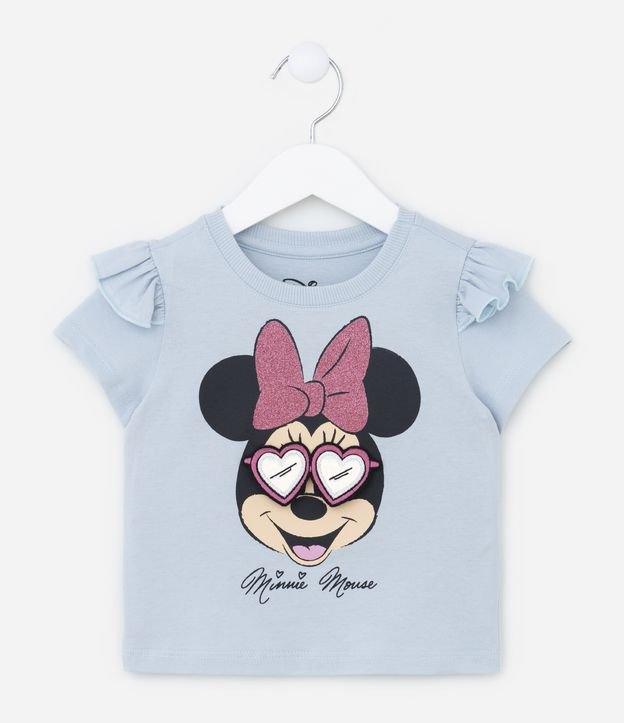 Camiseta Infantil com Babados e Estampa da Minnie - Tam 1 a 6 Anos