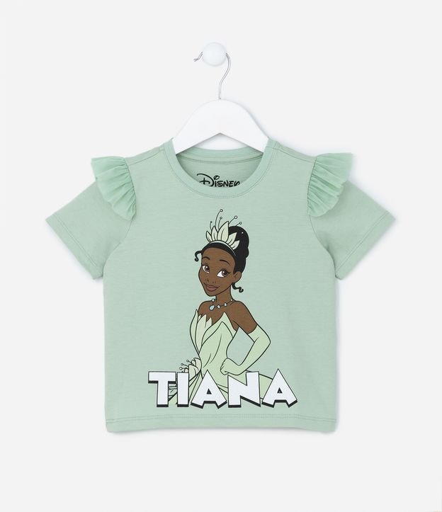 Camiseta Infantil com Babados em Tule e Estampa da Princesa Tiana Tam 1 a 5 Anos