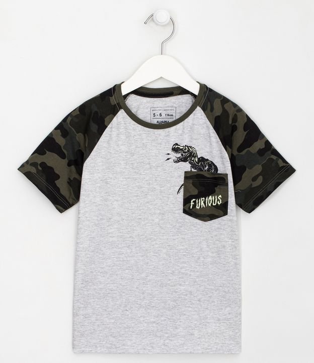 Camiseta Infantil com Bolsinho Estampa Dino que Brilha no Escuro - Tam 5 a 14 anos
