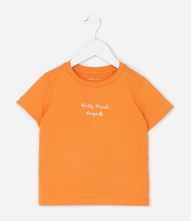 Camiseta Infantil com Bordado Lettering e Limão - Tam 1 a 6 Anos Laranja