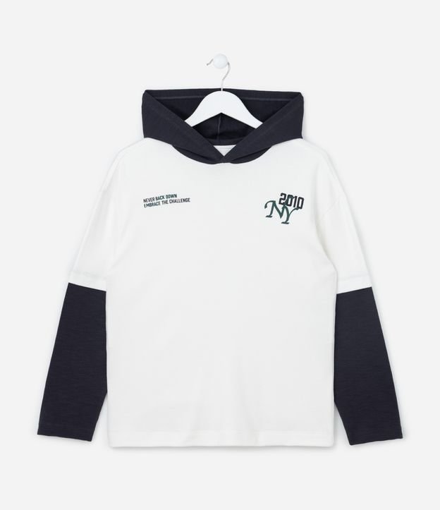 Camiseta Infantil com Capuz e Manga Sobreposta - Tam 5 a 14 Anos