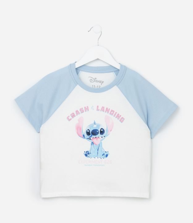 Camiseta Infantil com Cava Raglan e Estampa Stitch - Tam 5 a 14 Anos Azul/Branco