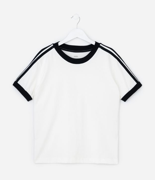 Camiseta Infantil com Detalhes Contrastantes - Tam 5 a 14 anos Branco