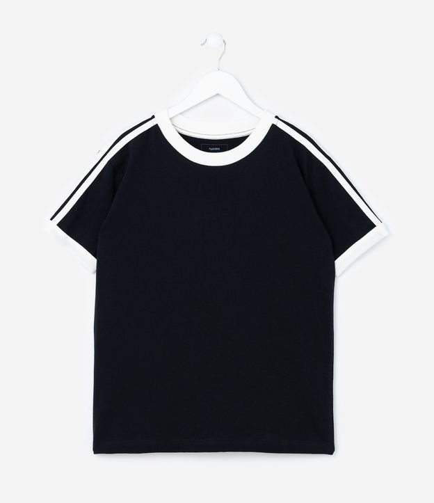Camiseta Infantil com Detalhes Contrastantes - Tam 5 a 14 anos Preto