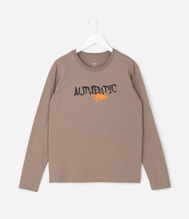 Camiseta Infantil com Estampa Authentic – Tam 5 a 14 Anos Marrom Taupe
