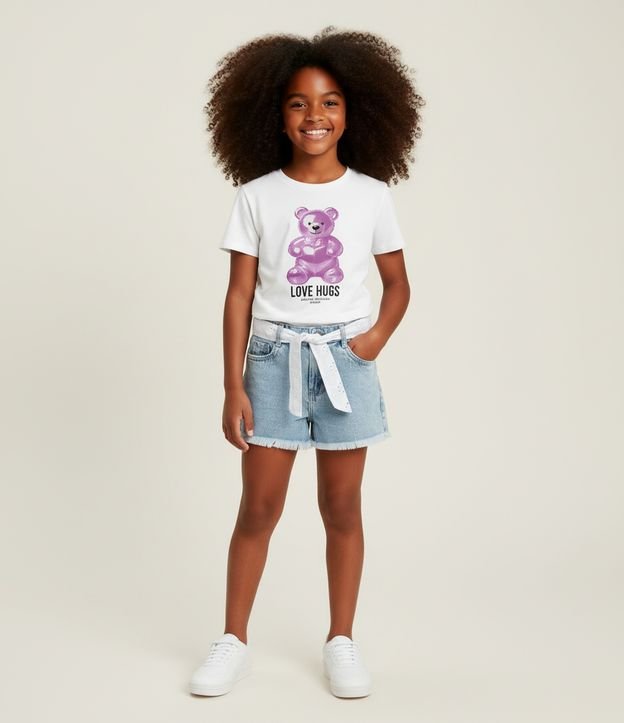 Camiseta Infantil com Estampa Balão de Ursinho - Tam 7 a 14 Anos Branco