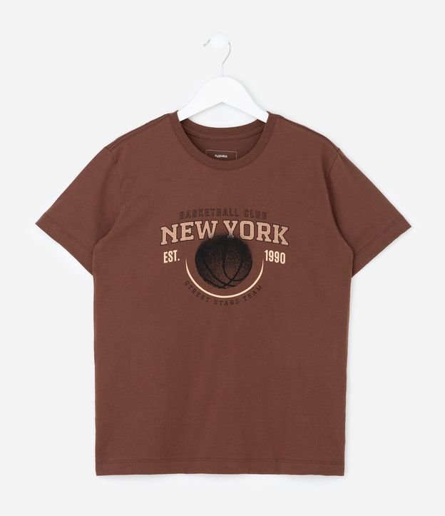 Camiseta Infantil com Estampa Basquete New York – Tam 5 a 14 Anos Marrom