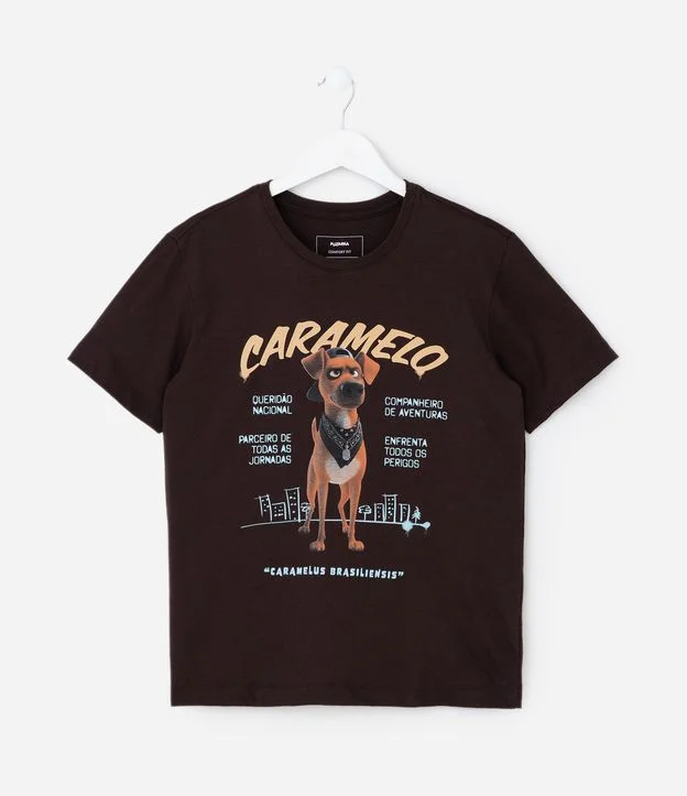 Camiseta Infantil com Estampa Cachorro Caramelo Divertido – Tam 5 a 14 Anos Marrom Escuro