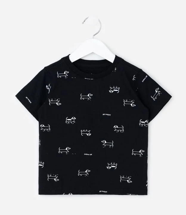 Camiseta Infantil com Estampa Cachorro Linguicinha - Tam 1 a 4 Anos Preto