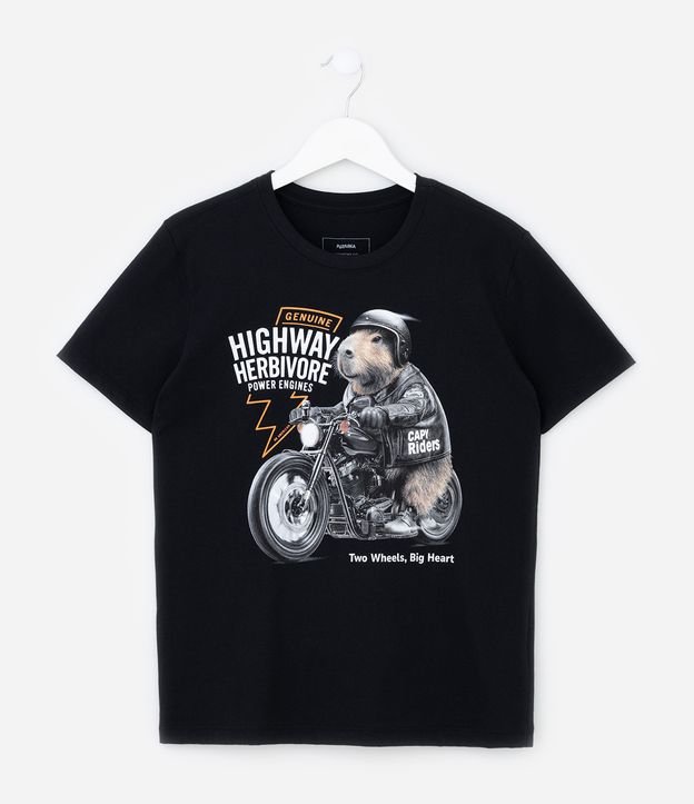 Camiseta Infantil com Estampa Capivara Motoqueira - Tam 5 a 14 Anos Preto