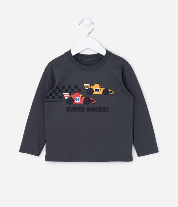 Camiseta Infantil com Estampa Carros de Corrida - Tam 1 a 6 Anos Cinza