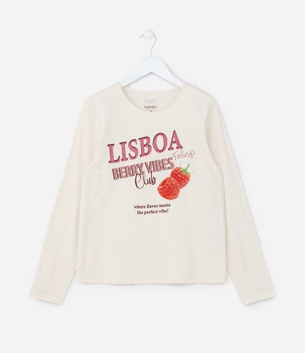 Camiseta Infantil com Estampa Cerejas - Tam 5 a 14 Anos Bege
