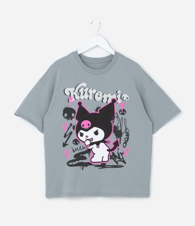 Camiseta Infantil com Estampa da Kuromi com Brilhos - Tam 5 a 14 Anos Cinza