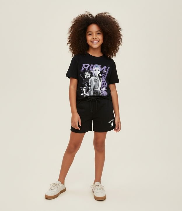 Camiseta Infantil com Estampa da Rumi Guerreiras do K-pop – Tam 5 a 16 Preto