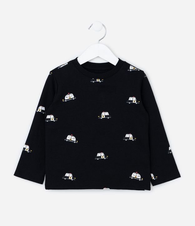 • Camiseta Infantil com Estampa de Carrinhos de Polícia – Tam 1 a 6 Anos Preto 1