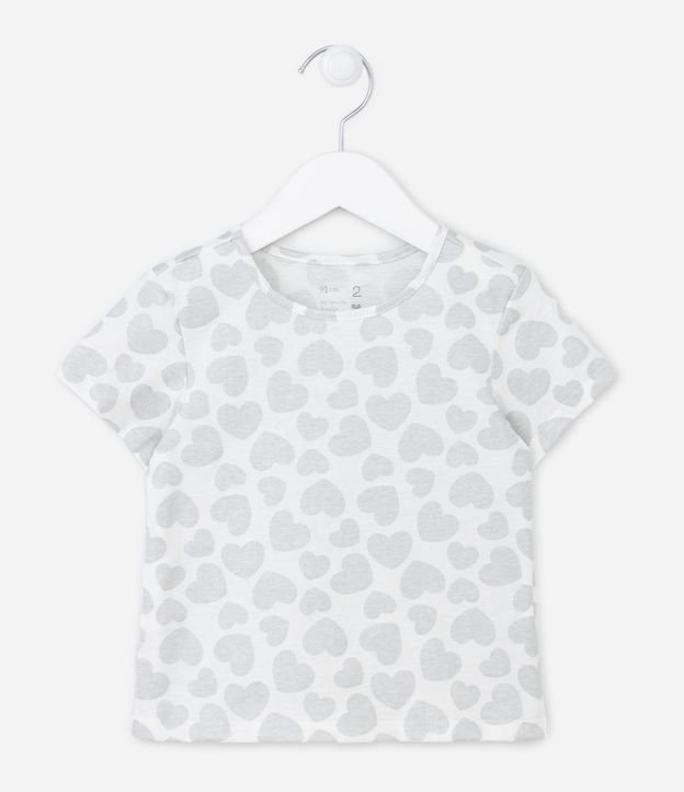 Camiseta Infantil com Estampa de Corações com Glitter - Tam 1 a 5 anos