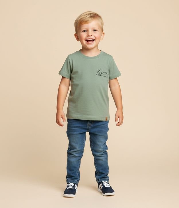• Camiseta Infantil com Estampa de Dinossauros no Peito – Tam 1 a 5/6 Anos Verde 1