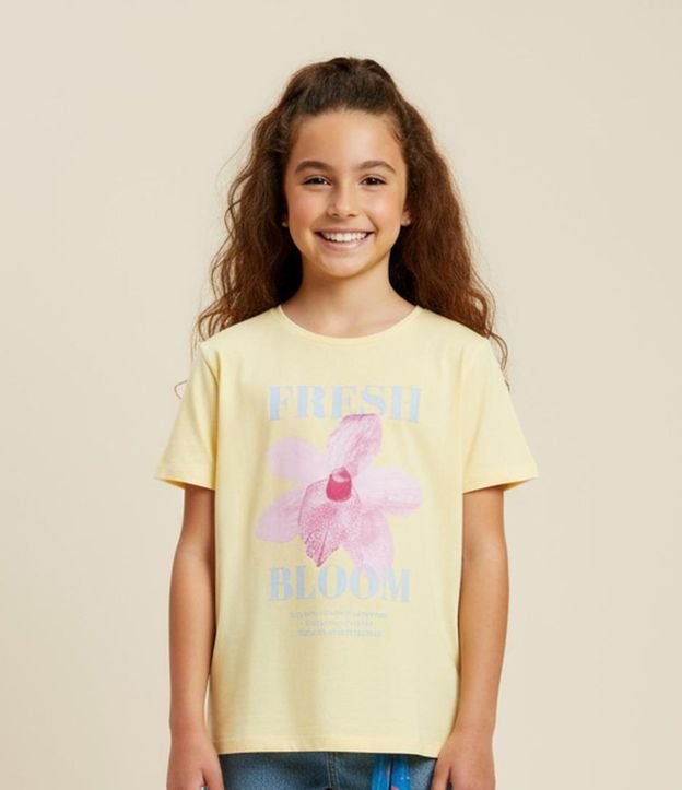 Camiseta Infantil com Estampa de Flor - Tam 5 a 14 Anos Amarelo