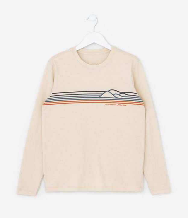Camiseta Infantil com Estampa de Listras e Montanhas - Tam 5 a 14 anos