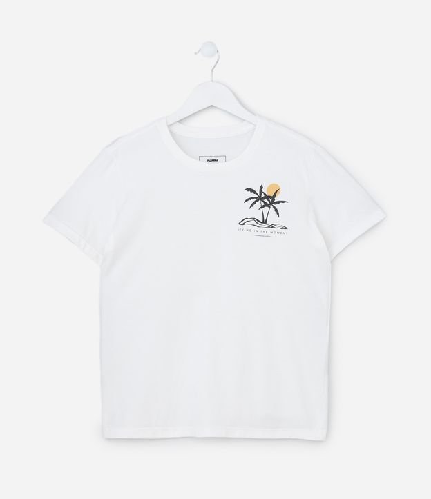 Camiseta Infantil com Estampa de Praia - Tam 5 a 14 Anos Branco
