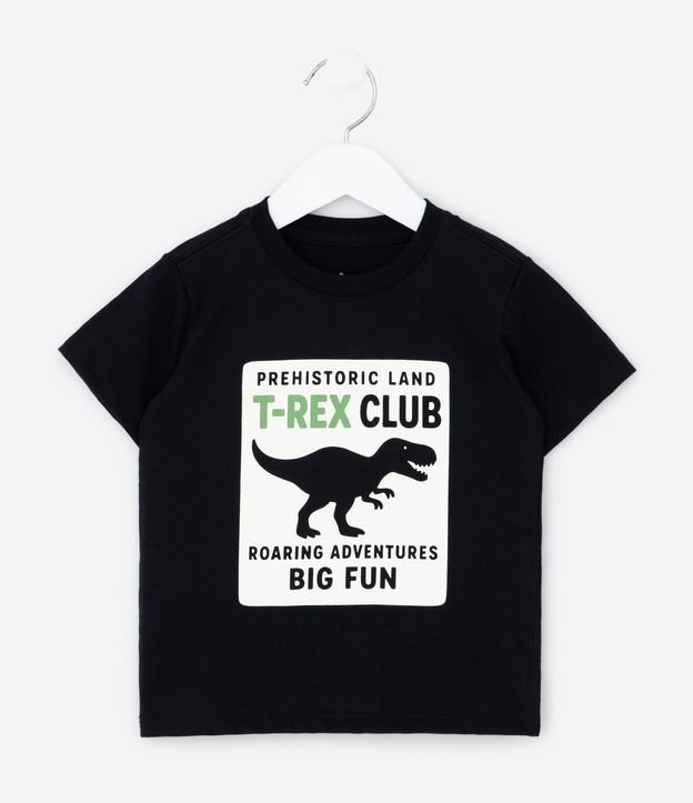 Camiseta Infantil com Estampa Dino T-Rex - Tam 1 a 6 Anos Preto