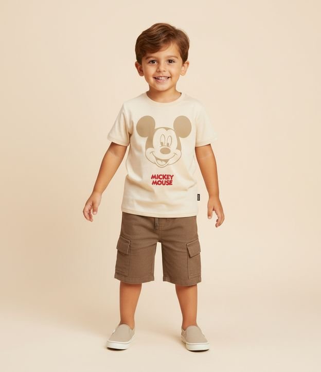 Camiseta Infantil com Estampa em Relevo Mickey Mouse - Tam 1 a 5 Anos Bege