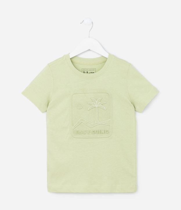 Camiseta Infantil com Estampa Embossed de Praia - Tam 5 a 14 Anos