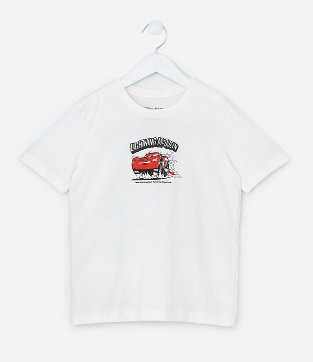 Camiseta infantil confeccionada em algodão de material mais sustentável. Possui gola redonda, manga curta e estampa frente e costas do filme Carros.