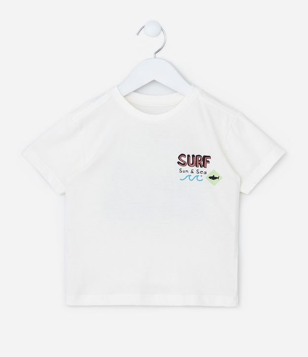 Camiseta Infantil com Estampa Frente e Costas Surf - Tam 1 a 6 Anos Branco