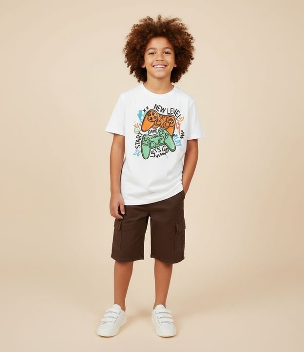 Camiseta Infantil com Estampa Gamer New Level – Tam 5 a 14 Branco
