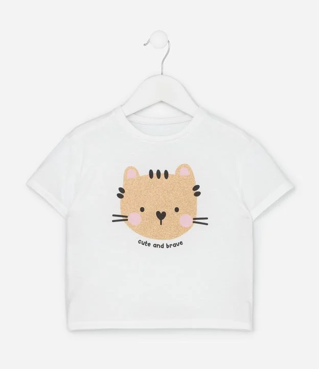 Camiseta infantil em meia malha com toque macio e modelagem relaxed. Possui estampa localizada de gatinho com aplicação de glitter, trazendo charme e diversão ao visual. Ideal para composições leves do dia a dia. Confeccionado em algodão certificado BCI e boas práticas ambientais.