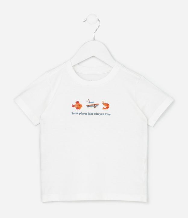 Camiseta Infantil com Estampa Ícones do Mar - Tam 1 a 6 Anos Branco