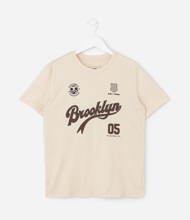 Camiseta Infantil com Estampa Lettering Esportivo Brooklyn – Tam 5 a 14 Anos Bege Claro
