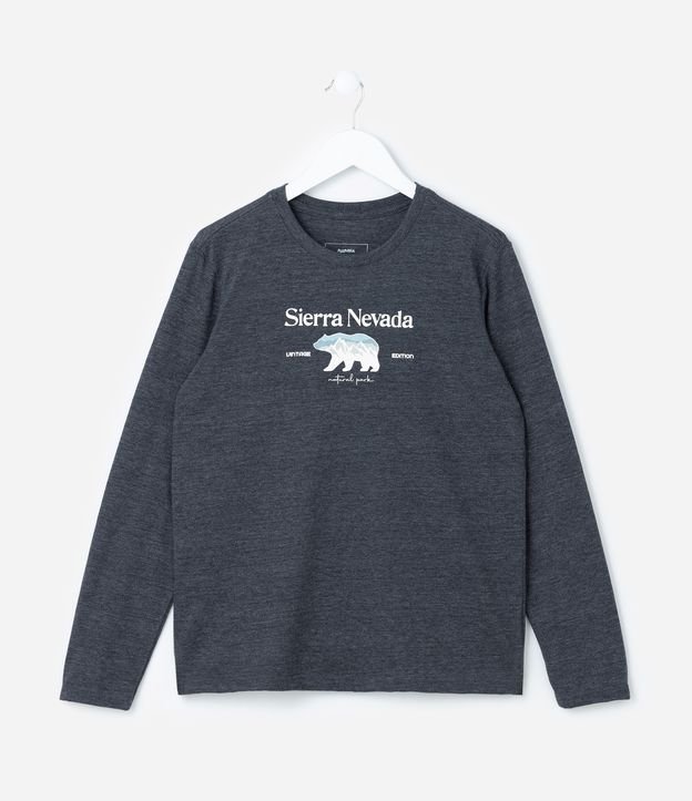 Camiseta infantil confeccionada em algodão, com mangas longas e estampa de urso com lettering "Sierra Nevada".